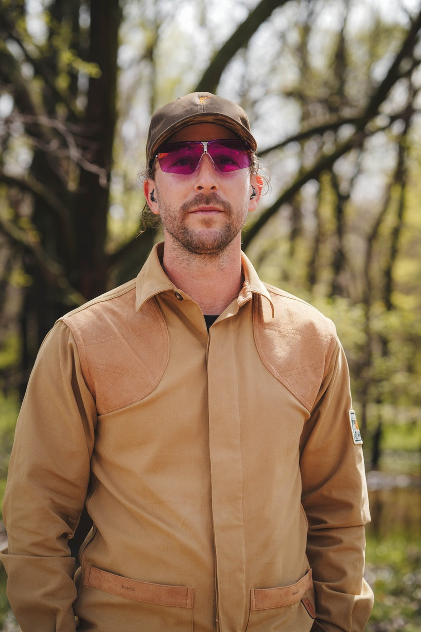 Meet Clays Jacket: where sophistication meets pride. Crafted in Boston, Massachusetts, this jacket combines quality with style. Constructed from 8.5-ounce brush canvas duck, it features Alcantara® micro-suede reinforced shooting shoulders and shell pockets, offering both resilience and elegance. In russet brown with chestnut accents, it's a staple for clay courses, embodying durability and mobility. Elevate your game and style effortlessly with the Clays Jacket – a symbol of refined taste and unwavering performance.